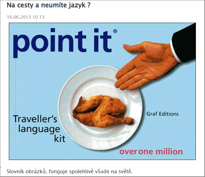 Já se jí naprosto vážně ptám, zda nás dopraví až k nádraží, a ukazuji jí obrázek vlaku z knižky POINT IT ****. Paní se na mě široce usměje, horlivě kývá hlavou na znamení souhlasu – a zpívá dál.